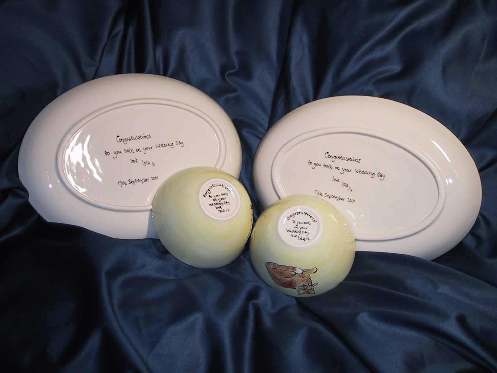 Even the cats get wedding plates! Can't imagine who these are a picture of! Congratulations! From Mark and Carla