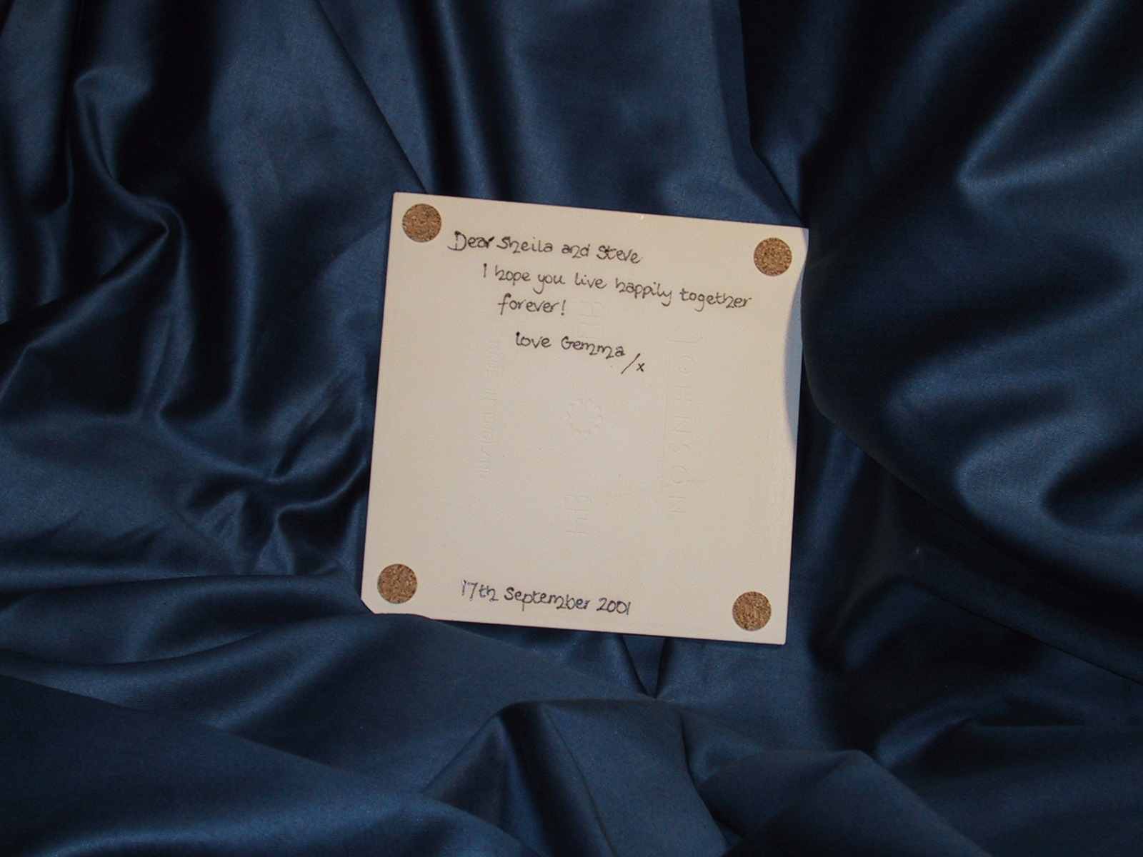 Congratulations Steve and Sheila on your wedding day with love Phil, Sue, Katie and Christopher